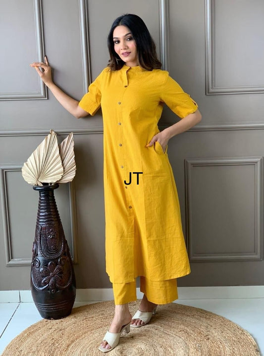 Beautiful Mustard Cotton Comfortable Kurta Plazzo Set