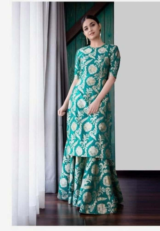 Heavy Banarasi Silk Party Wear 3 Piece Sharara Set