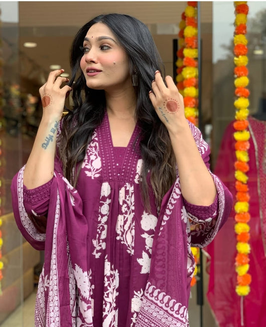 Heavy Cotton 3 Piece Suit Set With Dupatta
