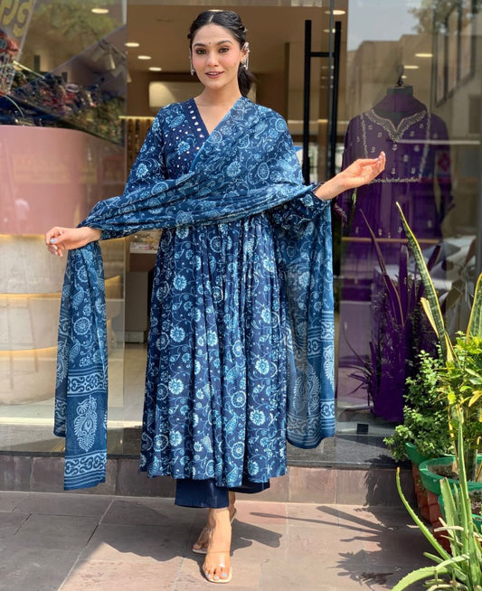 SAVE 45%Royal Blue Handblock Kurta Set