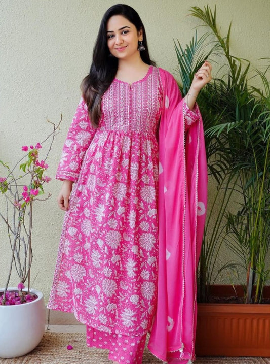 SAVE 45%Pink Handblock Kurta Set