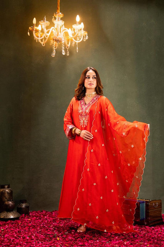 Pure Dolla Silk 3 Piece Set With Organza Dupatta