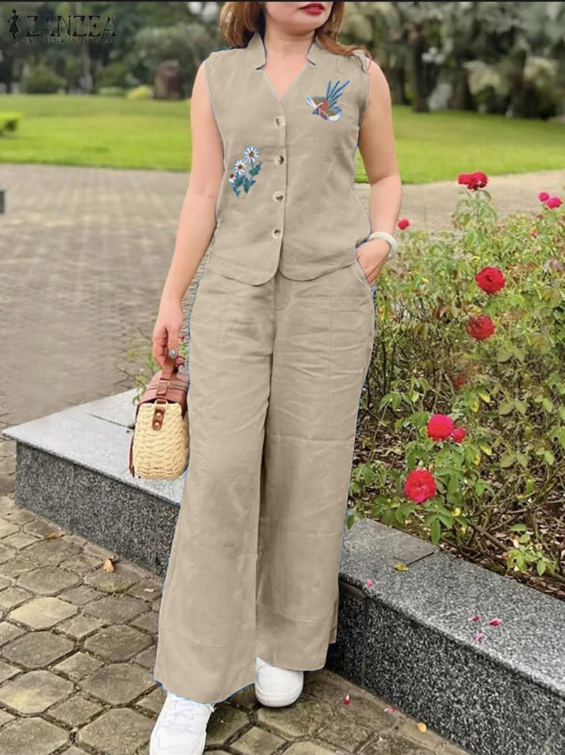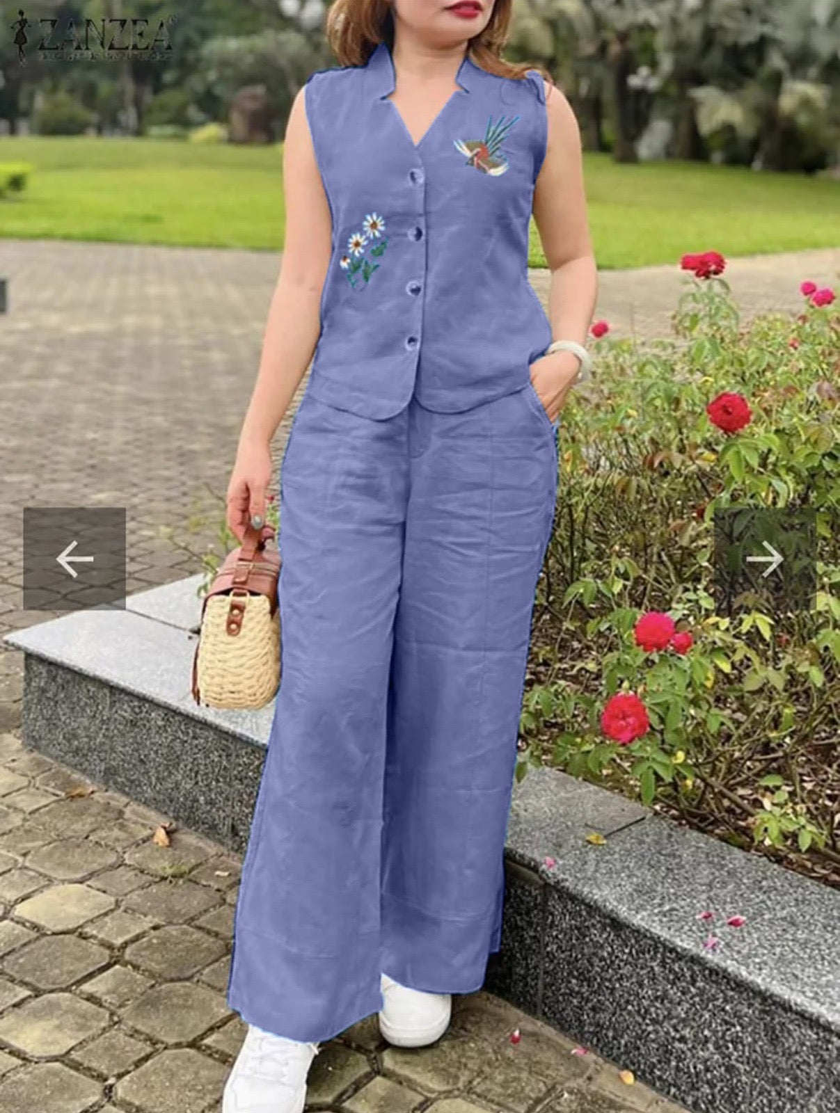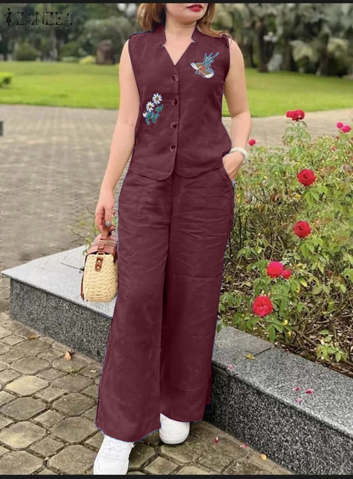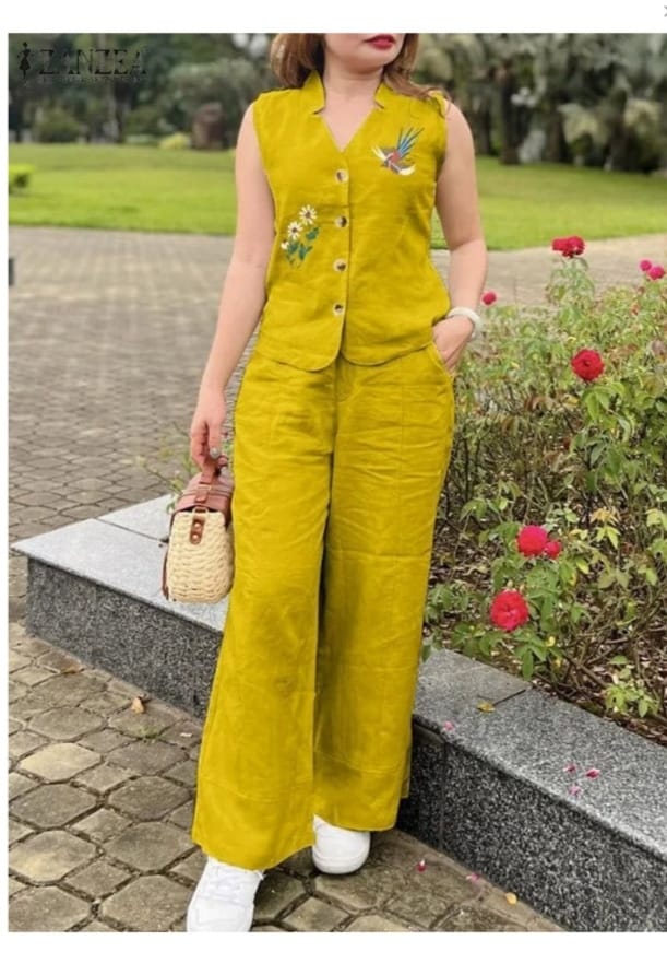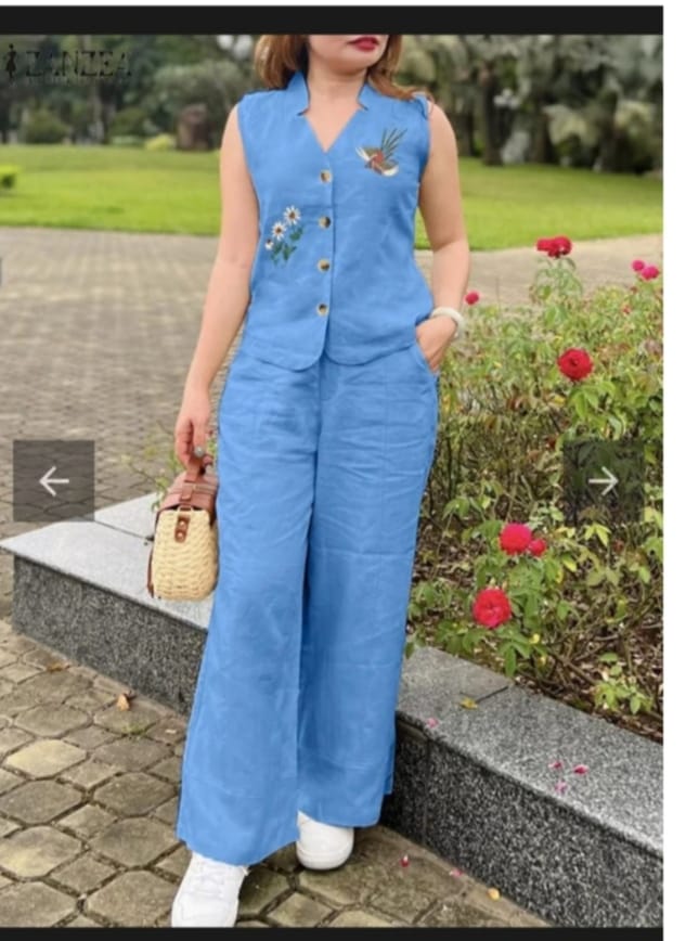 New launch ƒcoord - sets🌞 Premium cotton Slub top with beautiful colours 🥰🥰 Beautiful Aari Bird & Floral Work Paired up with premium cotton slub plazo with pocket « *Size 38 40 42 44