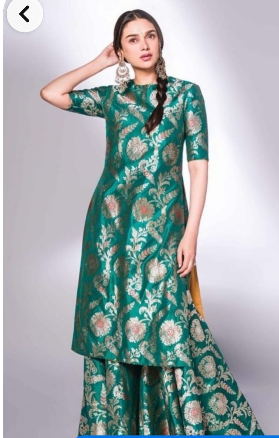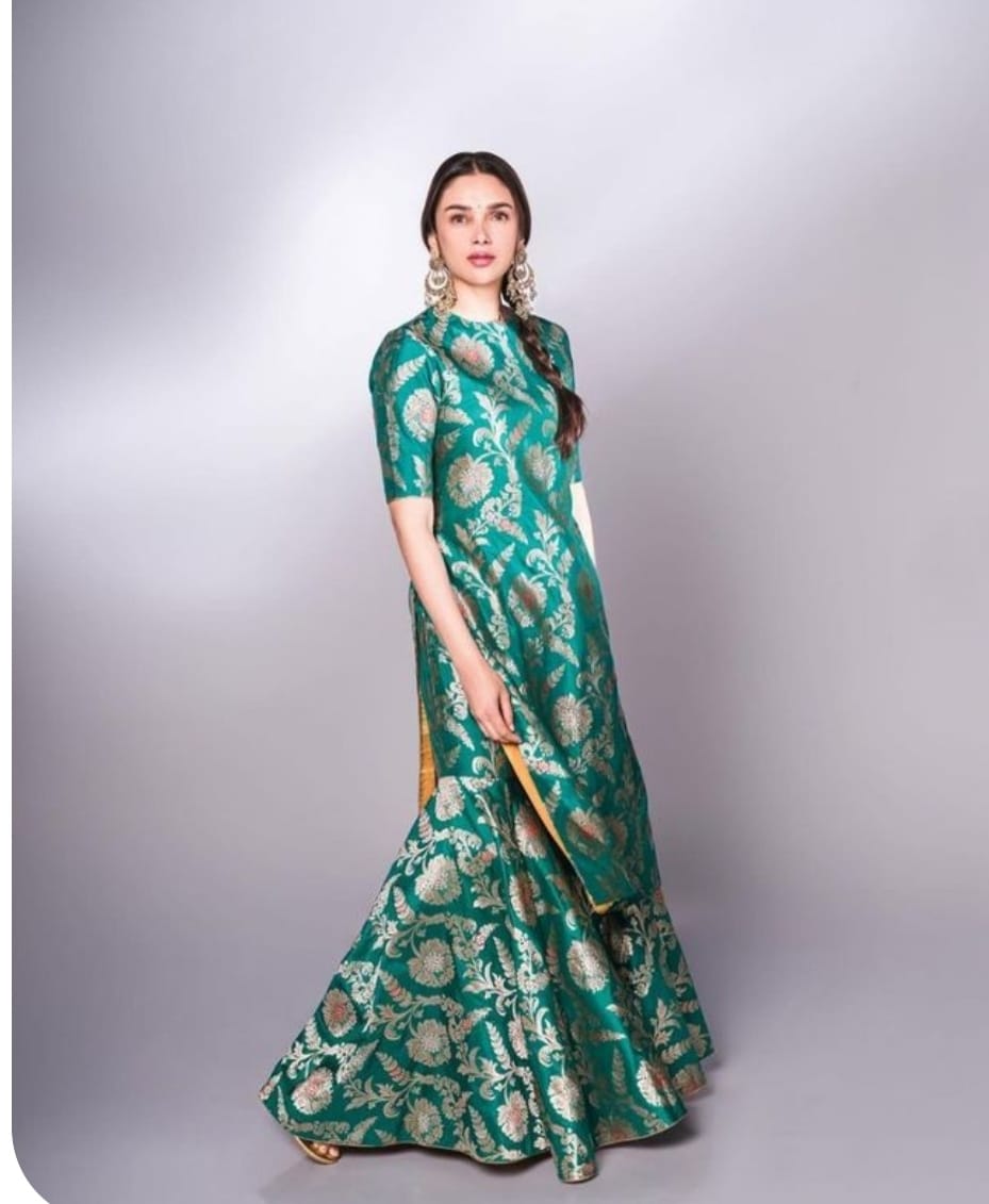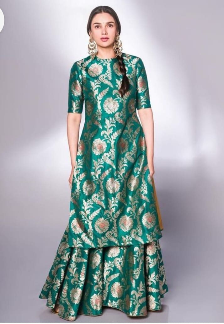 Crafted from luxurious Banarasi silk, our product exudes elegance and sophistication. This timeless fabric is known for its quality, rich colors, and intricate designs. Experience the potential of our Banarasi silk product and elevate your wardrobe with a touch of opulence. Kurti length-45 sharara length-38 Dupatta length-2.5 meter